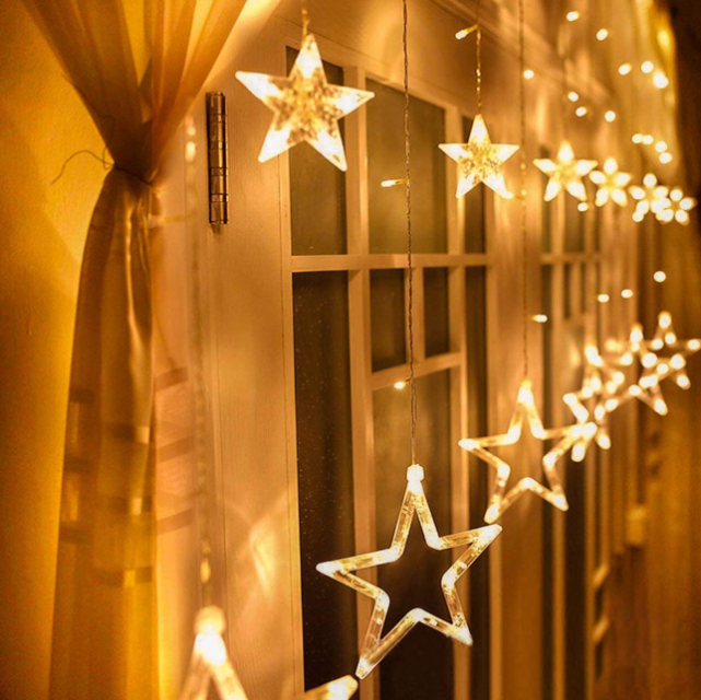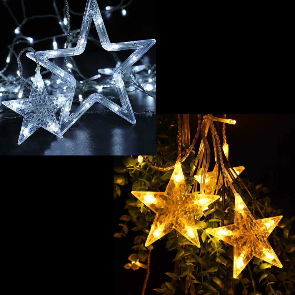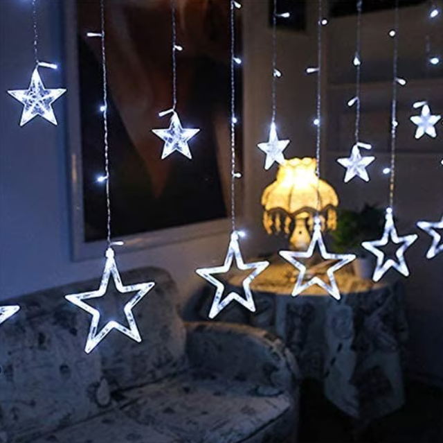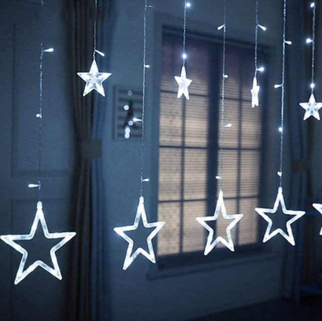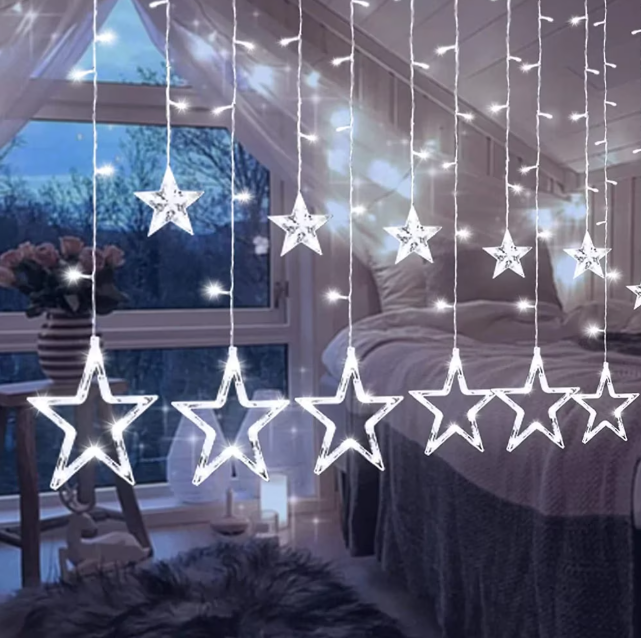 Transformă-ți fereastra, balconul sau peretele într-un decor de basm cu această perdea luminoasă de tip "ploaie". Designul spectaculos, cu 12 stele de dimensiuni mari (20 cm) și mici (10 cm), adaugă o notă de eleganță și magie oricărui spațiu.