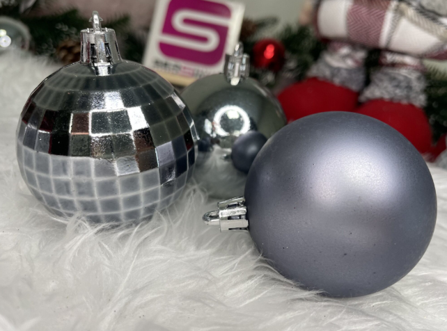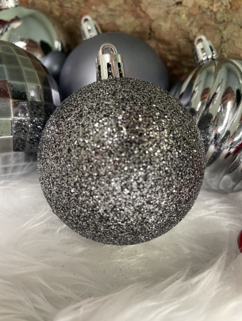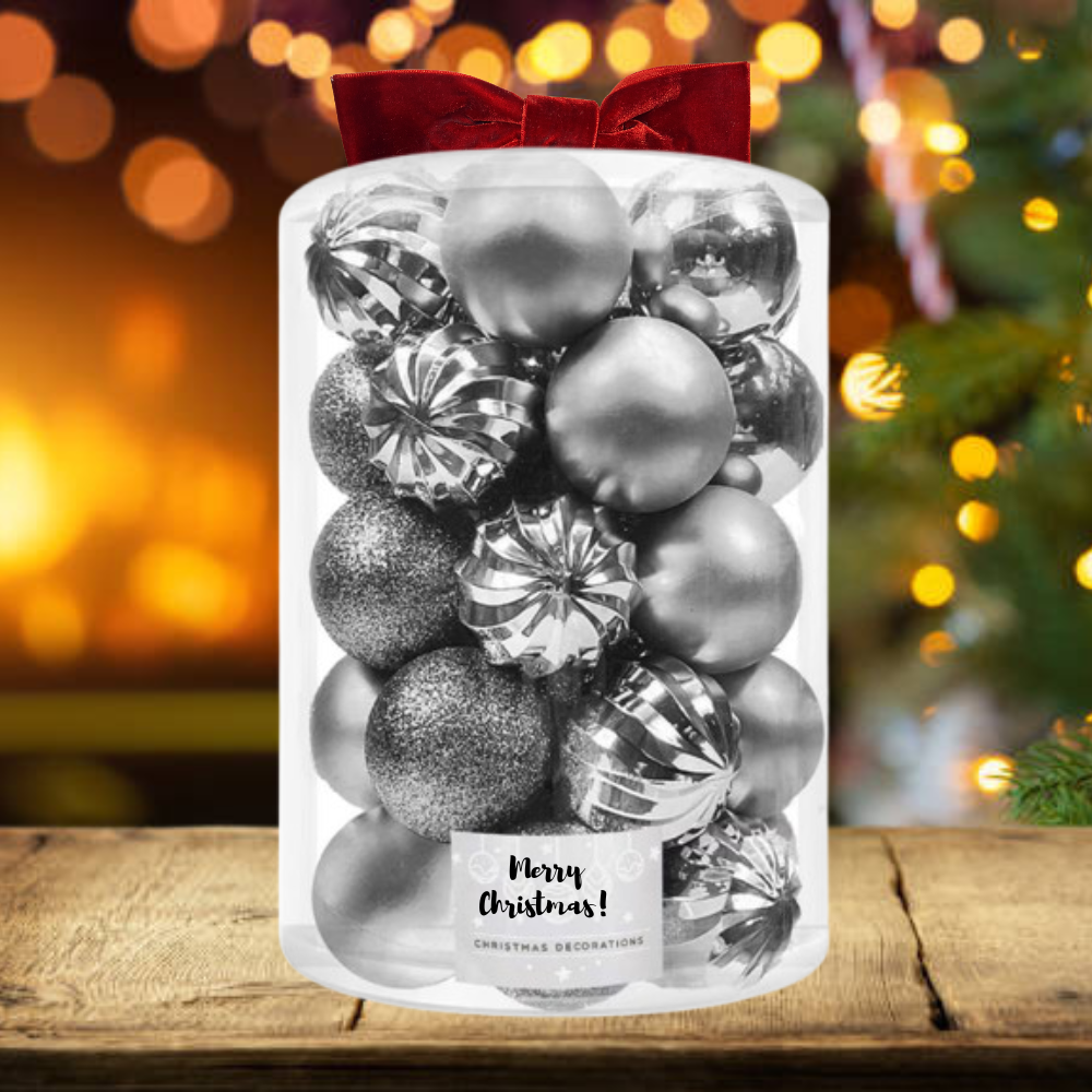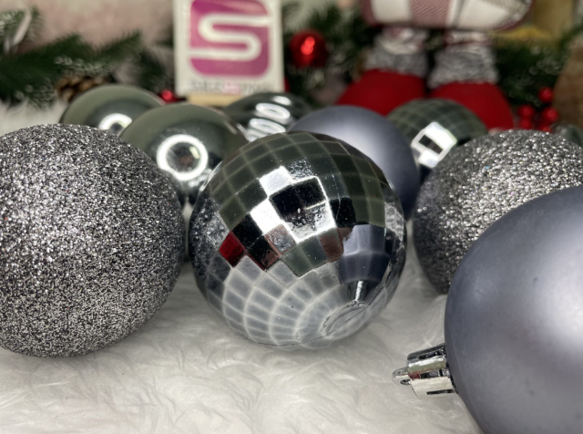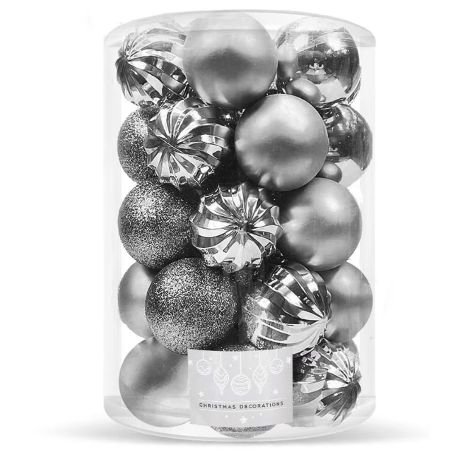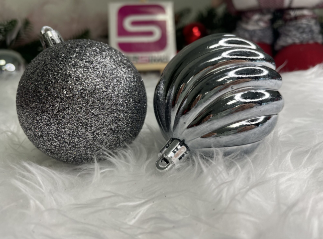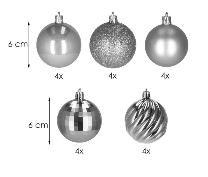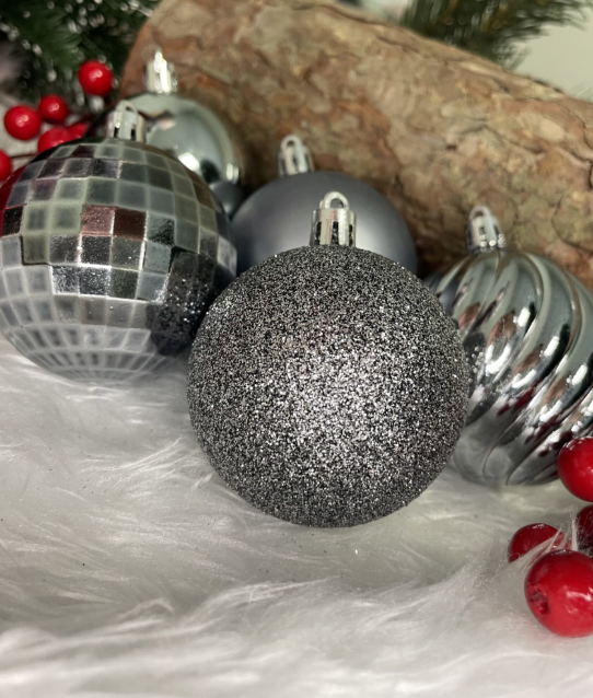 Set Premium Globuri de Crăciun (20 Bucăți), 6 cm, 5 Texturi Mixte, Culoare Argintiu