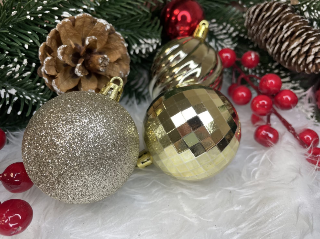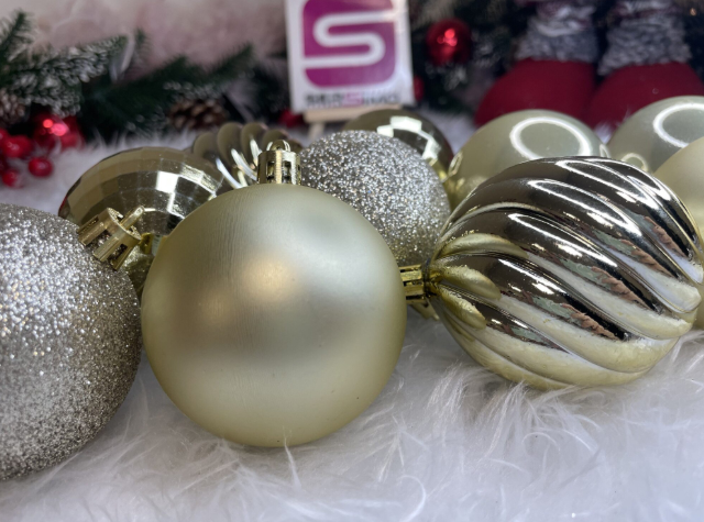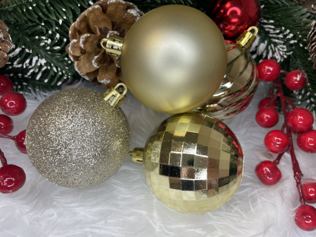 Set Premium Globuri de Crăciun (20 Bucăți), 6 cm, 5 Texturi Mixte, Culoare Auriu